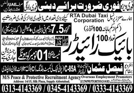 Vacant posts including delivery boy, bike rider and rider are announced in Faisal Usman Trade Test & Training Center Dubai, abu dhabi Dubai as per 31 October 2023 advertisement in daily Express Newspaper. Persons with Intermediate and Matric etc. education can apply.