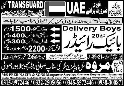 Marwa Skill Development Center Abu Dhabi, sharjah UAE invites applications from eligible candidates for the post of bike rider, rider and delivery boy as per advertisement of September 21, 2024 published in daily Express Newspaper. Persons with Matric and Intermediate etc. education can apply.
