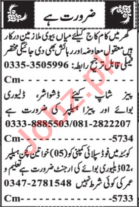 Delivery Boy & Kitchen Helper Jobs 2020 in Quetta