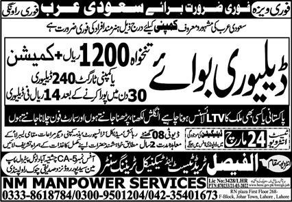 Apply at Al Faisal Trade Test & Technical Training Center latest Overseas jobs in Driving and departments before closing date which is around March 24, 2022 or as per closing date in newspaper ad. Read complete ad online to know how to apply on latest Al Faisal Trade Test & Technical Training Center job opportunities. Salary varies from 62000. Earn more by overtime. During job accommodation, medical and transport facility is available.