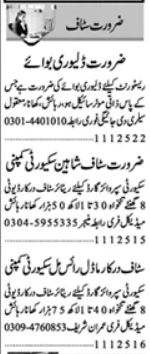 Vacant posts including security staff, security supervisor guard and delivery boy are announced in Private Company Lahore, lahore Punjab Pakistan as per 11 January 2025 advertisement in daily Dunya Newspaper. Persons with Intermediate, Middle and Matric etc. education can apply.