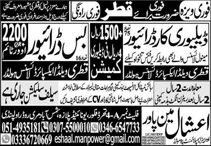 Latest Eshaal Manpower Overseas Employment Promoters Driving Posts Qatar 2025