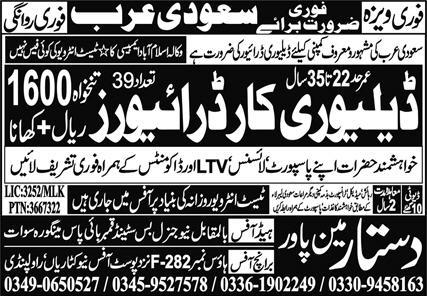 Latest Dastar Manpower Overseas Employment Promoters Driving Posts Dammam 2025