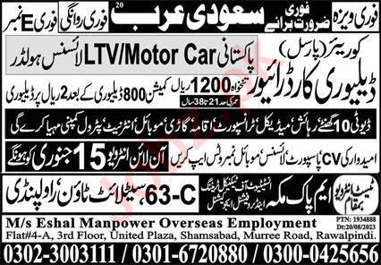 Latest Eshaal Manpower Overseas Employment Promoters Driving Posts Riyadh 2025
