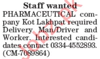 Latest Pharmaceutical Company Driving Posts Lahore 2025