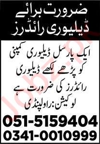 Delivery Company Islamabad, islamabad Islamabad Pakistan invites applications from eligible candidates for the post of delivery rider as per advertisement of November 13, 2022 published in daily Express Newspaper. Educational qualifications required Middle, Intermediate and Matric etc.