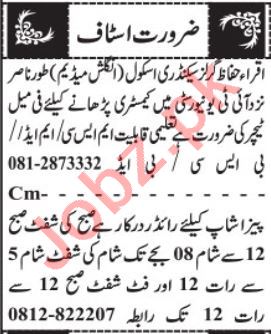Delivery Rider & Teaching Staff Jobs 2020 In Quetta