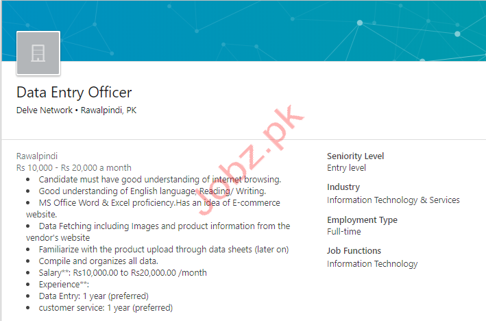 Latest Delve Business Network DBN Data Entry Posts Rawalpindi 2025