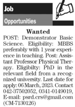 Latest Classifieds jobs in Educational Institute in Teaching and others can be applied till 6 March 2023 or as per closing date in newspaper ad. Read complete ad online to know how to apply on latest Educational Institute job opportunities.