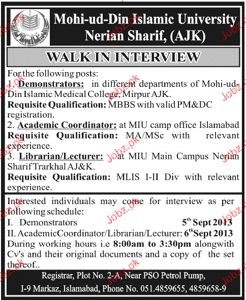 Apply as per details in job advertisement. Login to view further details of how to apply via https://www.jobz.pk online.