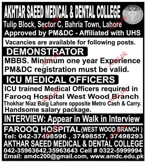 Demonstrators And ICU Medical Officer Wanted