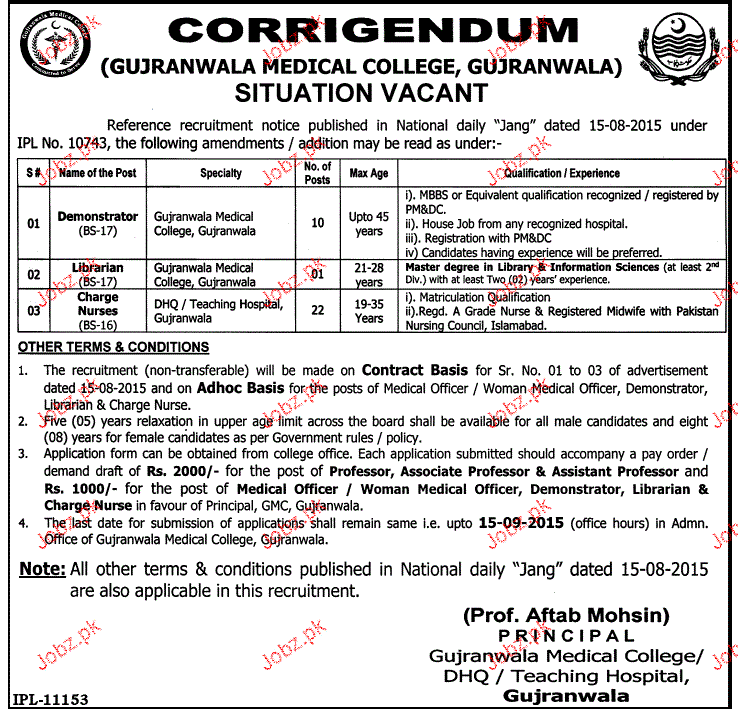 Latest Government Medical Posts Gujranwala 2025