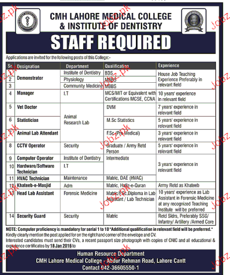 How to Apply on CMH Lahore Medical College Job Advertisement