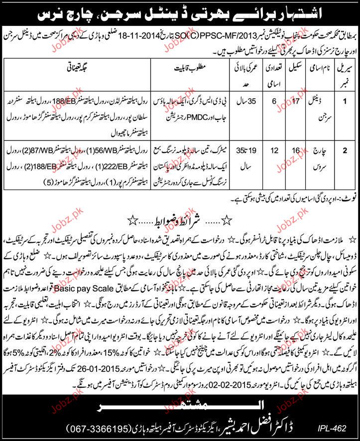 Dental Surgeons and Charge Nurses Job Opportunity