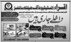 Iqra Institute of Health Sciences Dental Technology admissions 2025 has been announced. Students can enroll for admissions in Iqra Institute of Health Sciences Islamabad Islamabad Pakistan for academic year 2025 to continue campus based or online education in Science College. Eligible students for fulfilling criteria for admissions in can enroll as per Private admission policy 2025 till closing date 5 March 2025. Read newspaper ad for exact details.