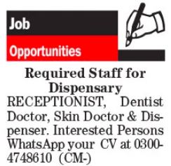 Dispensary latest Classifieds Medical jobs and others can be applied till 11 February 2024 or as per closing date in newspaper ad. Read complete ad online to know how to apply on latest Dispensary job opportunities. Some jobs in Dispensary may require skills like Medical and Health.