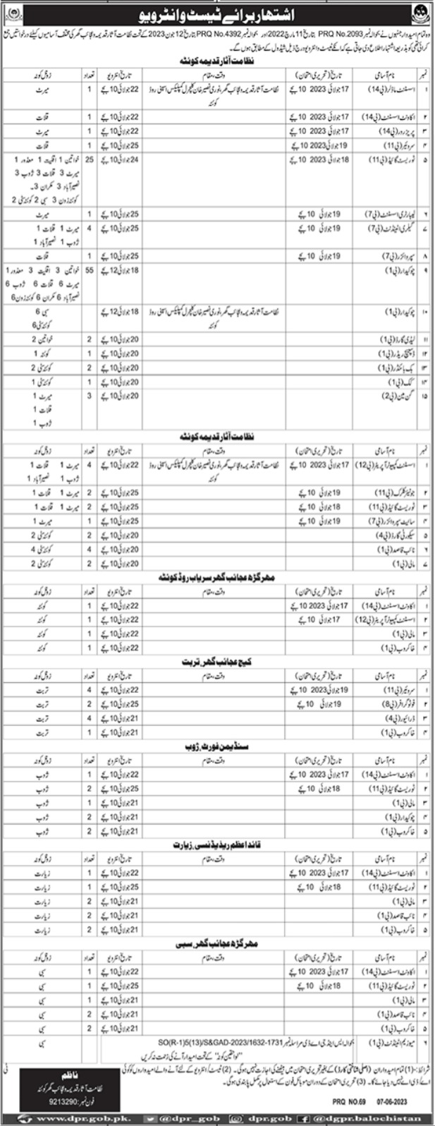 Department of Archaeology & Museums Quetta, quetta, ziarat, turbat, sibi and zhob Balochistan Pakistan invites applications from eligible candidates for the post of assistant computer operator, mali, clerk, supervisor, museum attendant, security guard, site supervisor, gun man, account assistant, tourist guide, cook, naib qasid, khakrob, preserver, gallery attendant, chowkidar, assistant modeller, book binder, driver, laboratory assistant, photographer, dispatch rider, surveyor and lady guard as per advertisement of July 12, 2023 published in daily Jang Newspaper. Persons with Intermediate, Matric, Middle, Bachelor and Primary etc. education can apply.