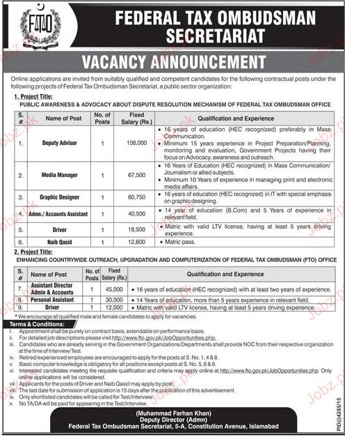 Apply as per details in job advertisement. Login to view further details of how to apply via https://www.jobz.pk online.