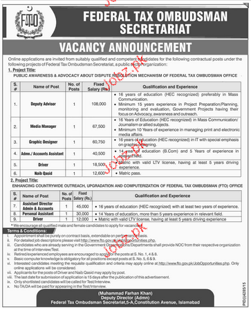 Apply as per details in job advertisement. Login to view further details of how to apply via https://www.jobz.pk online.