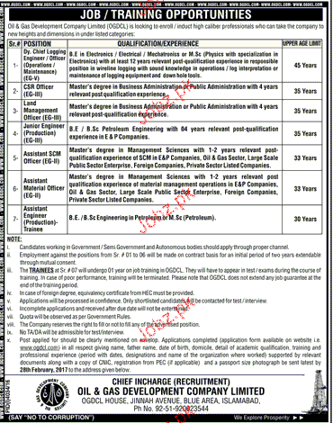 Deputy Chief, CSR, Junior Engineers Job in OGDCL