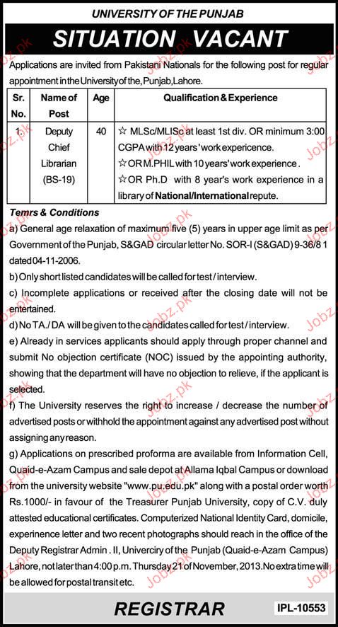 Apply as per details in job advertisement. Login to view further details of how to apply via https://www.jobz.pk online.