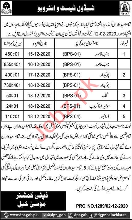 Deputy Commissioner DC Musakhel Jobs 2020 For Chowkidar
