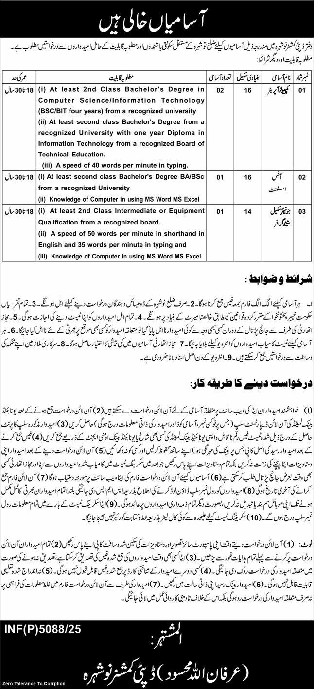 Deputy Commissioner DC Nowshera Jobs 2025 Computer Operator