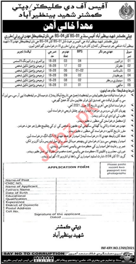 Deputy Commissioner DC Shaheed Benazirabad Jobs 2021