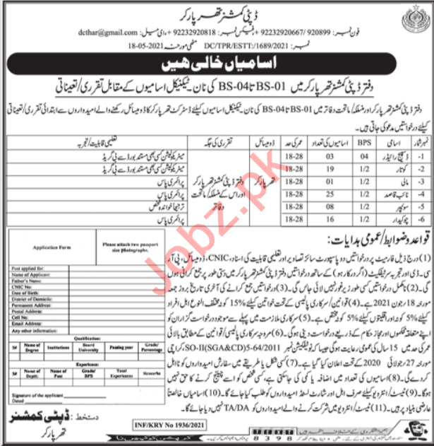Deputy Commissioner DC Tharparkar Jobs 2021