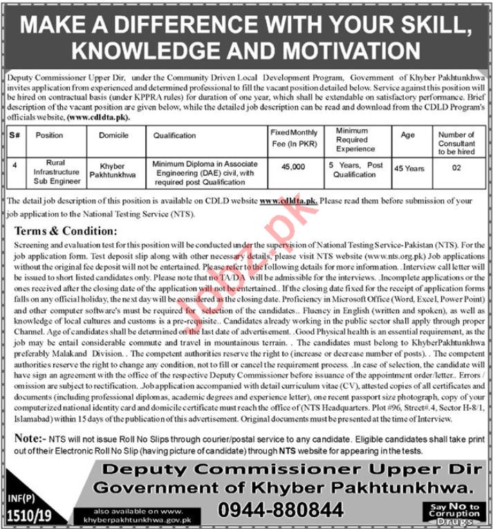 Latest Deputy Commissioner District Office Engineering Posts Upper Dir 2025