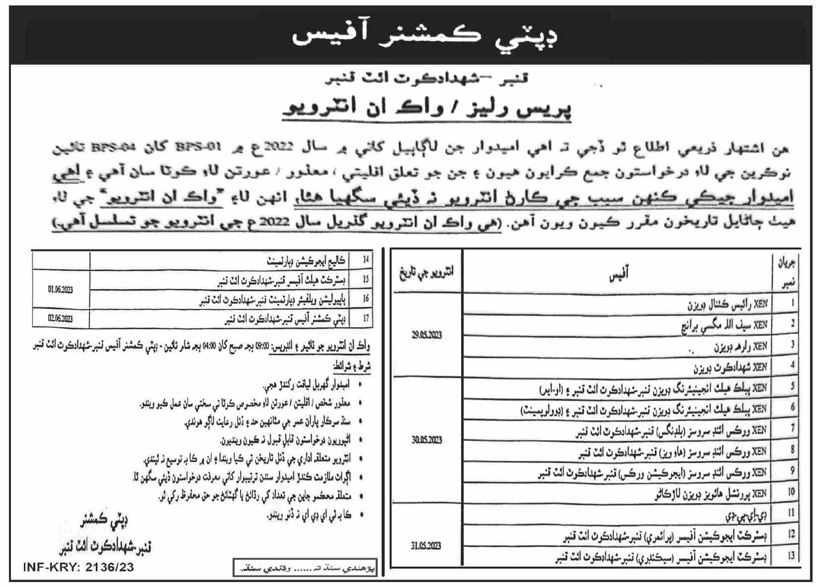 Latest Deputy Commissioner Office Management Posts Qambar Shahdadkot 2025