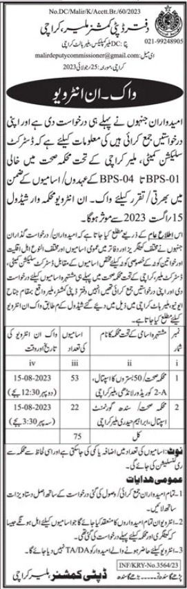 Deputy Commissioner Office Malir Jobs 2023