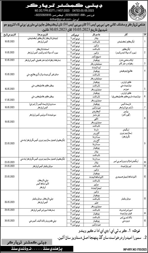 Deputy Commissioner Tharparkar Job Interviews 2023