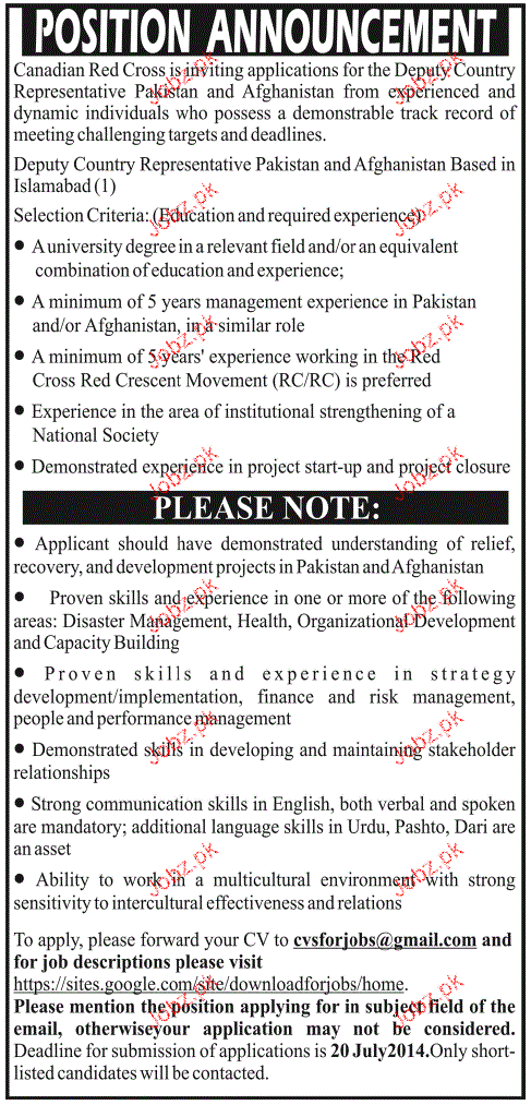 Apply as per details in job advertisement. Login to view further details of how to apply via https://www.jobz.pk online.