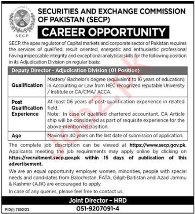 Deputy Director Adjudication Division Jobs In SECP