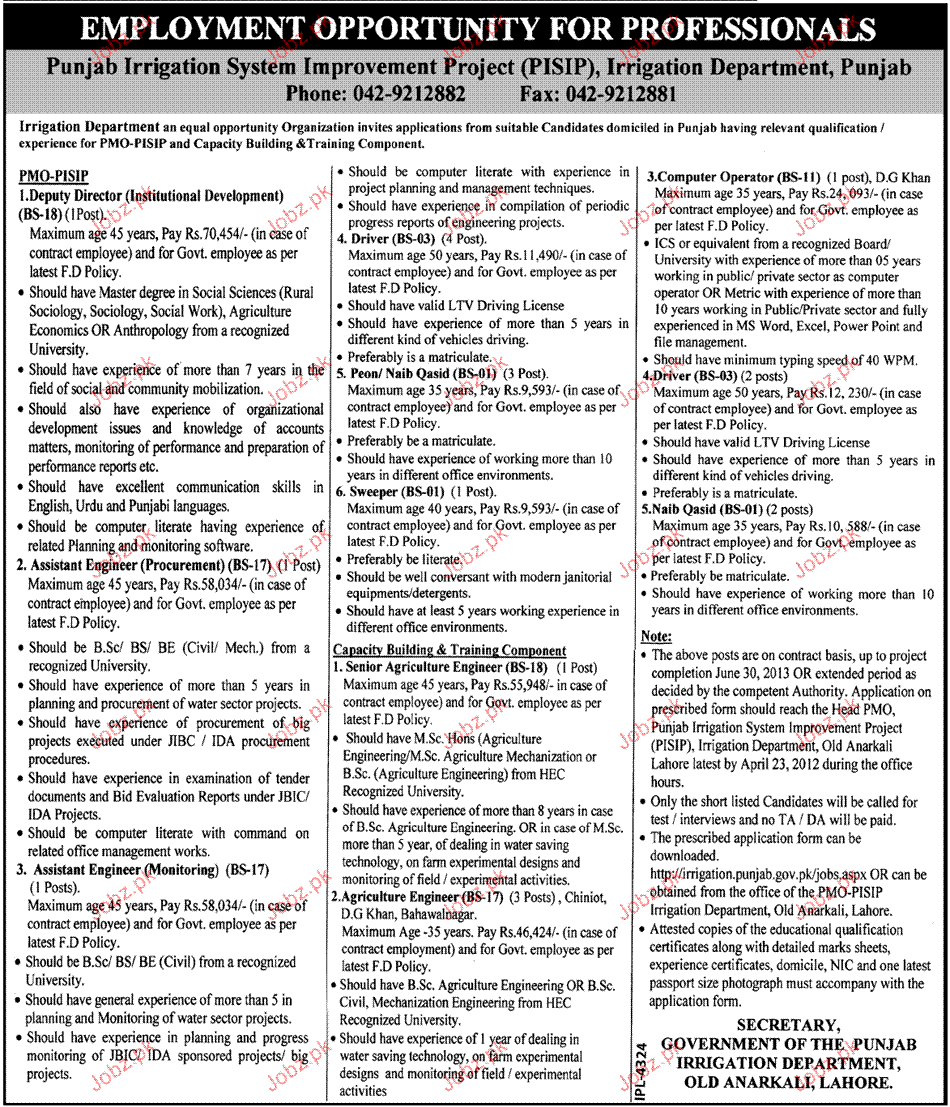 Apply as per details in job advertisement. Login to view further details of how to apply via https://www.jobz.pk online.