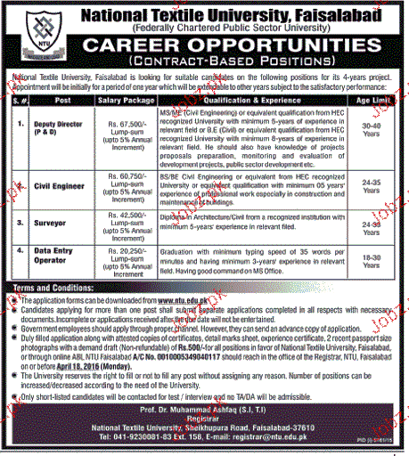 Apply as per details in job advertisement. Login to view further details of how to apply via https://www.jobz.pk online.