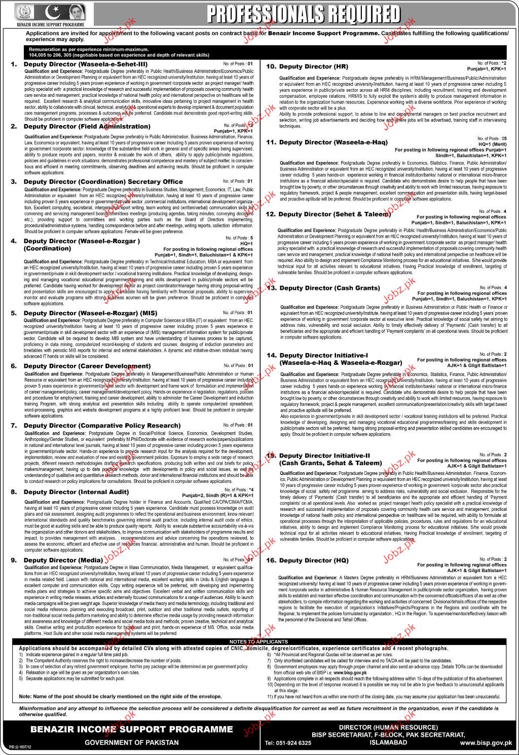 Apply as per details in job advertisement. Login to view further details of how to apply via https://www.jobz.pk online.