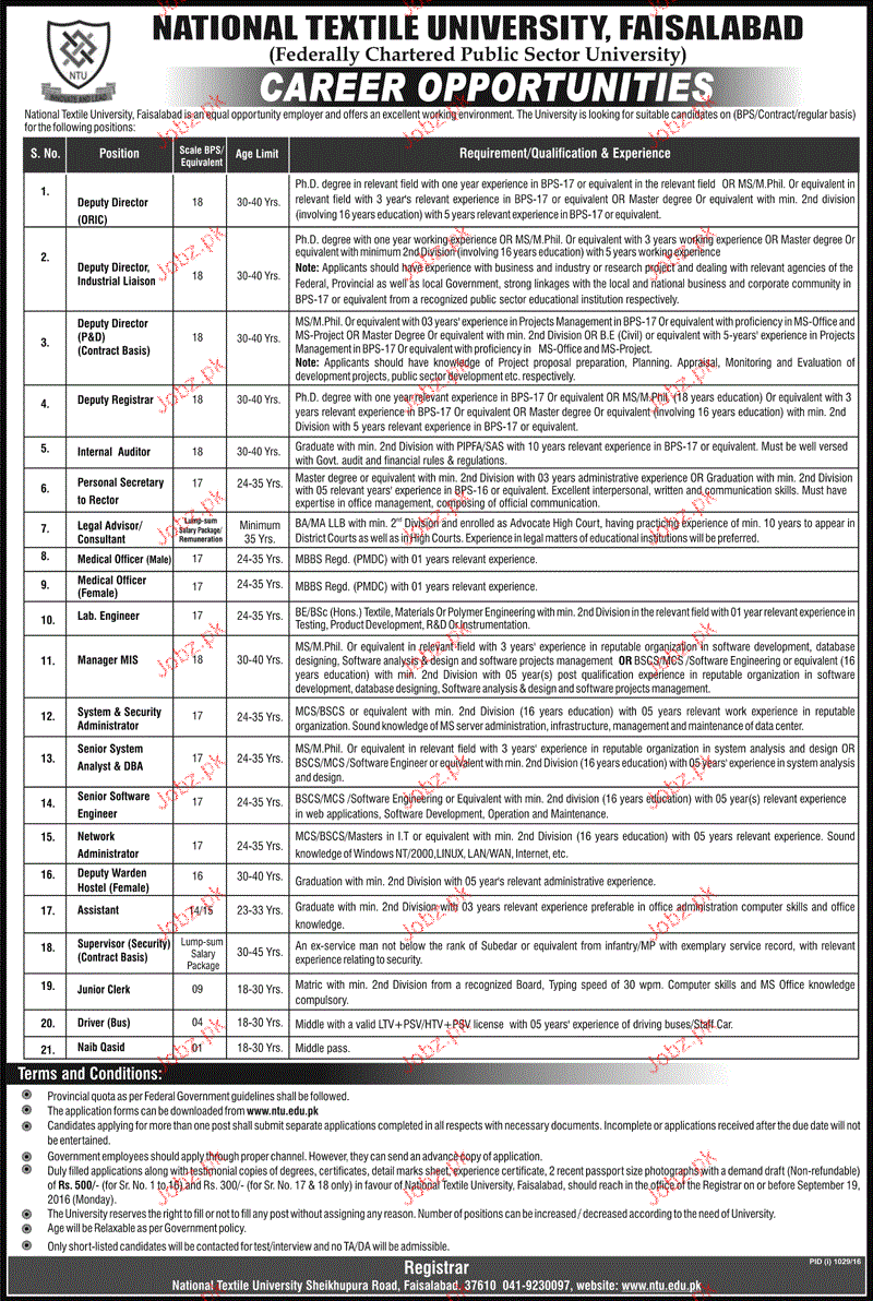 Apply as per details in job advertisement. Login to view further details of how to apply via https://www.jobz.pk online.