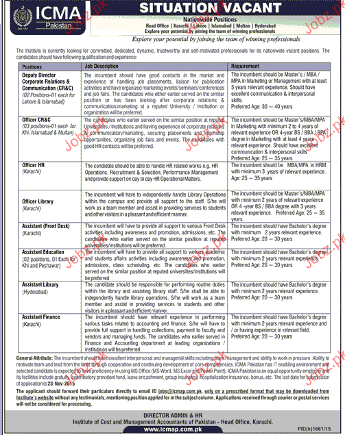 Apply as per details in job advertisement. Login to view further details of how to apply via https://www.jobz.pk online.