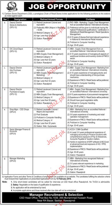 Latest Canteen Stores Department Management Posts Rawalpindi 2025