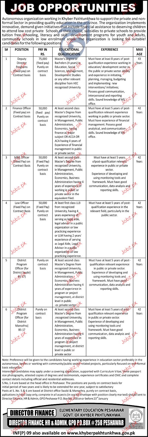 Latest Government Department Management Posts Peshawar 2025