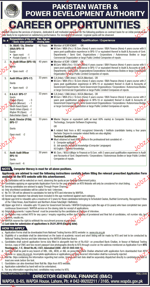 Apply as per details in job advertisement. Login to view further details of how to apply via https://www.jobz.pk online.