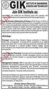 Deputy Directors Job In GIK Institute Of Engineering Science