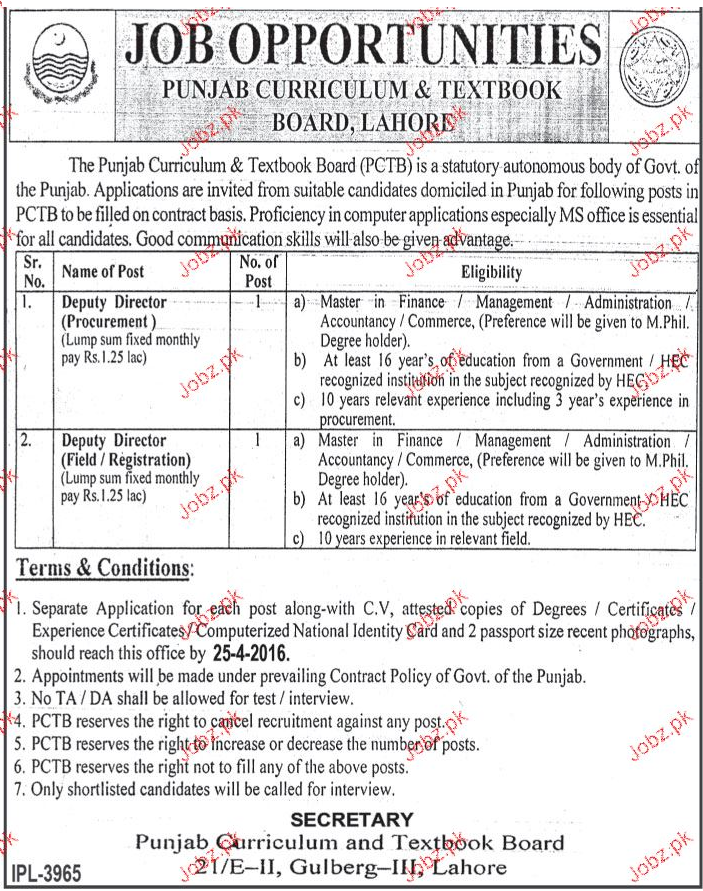 Deputy Directors Job In Punjab Curriculam And Textbook Board