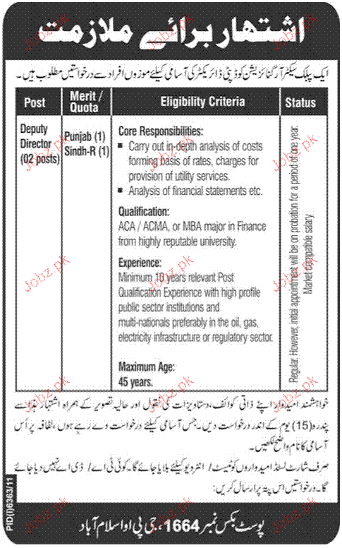 Apply as per details in job advertisement. Login to view further details of how to apply via https://www.jobz.pk online.