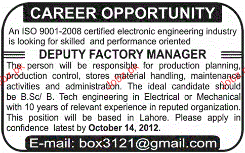 Deputy Factory Manager Job Opportunity