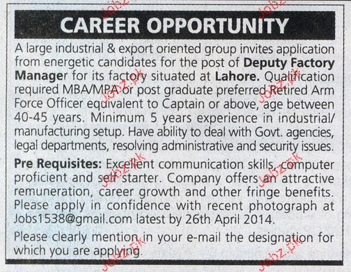Deputy Factory Manager Job Opportunity