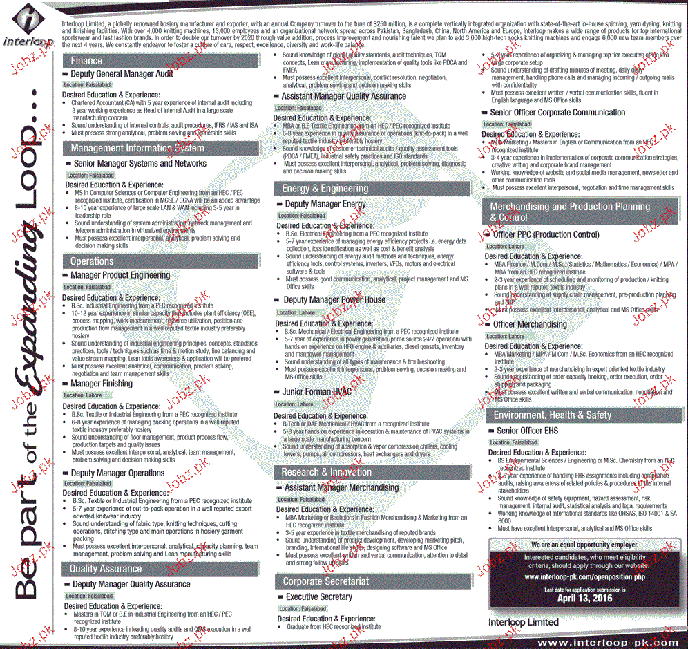 Apply as per details in job advertisement. Login to view further details of how to apply via https://www.jobz.pk online.