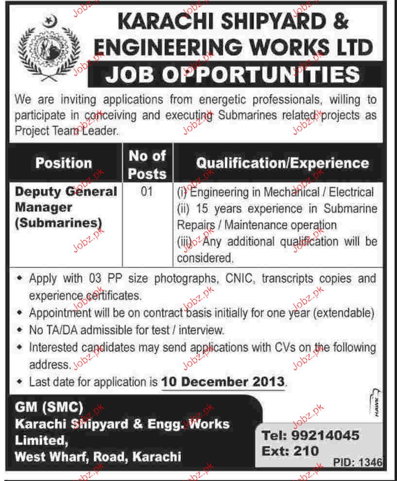 Deputy General Manager Job In Karachi Shipyard & Engineering